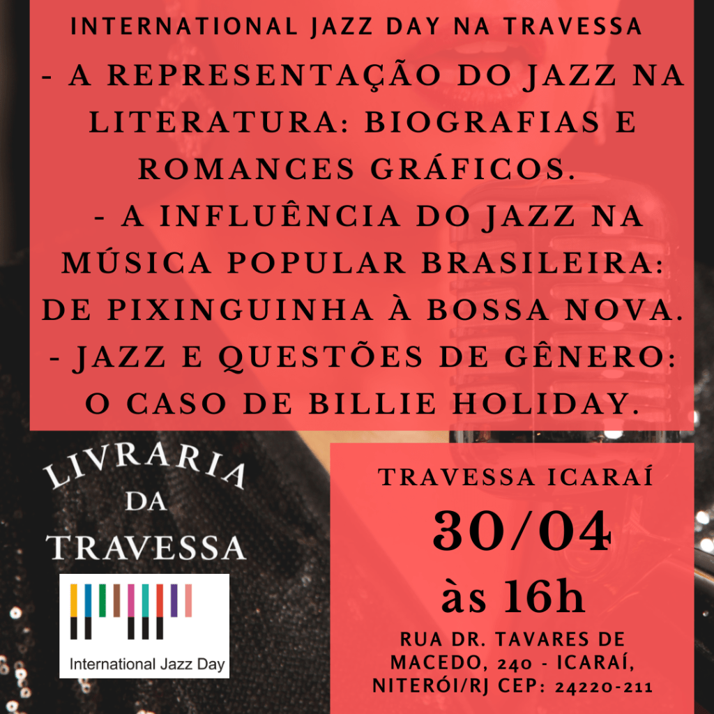 30 de Abril, às 16h – Dia Internacional do Jazz na LivrariaTravessa – Bate -papo “O Jazz e a Literatura” com Geisa Fernandes